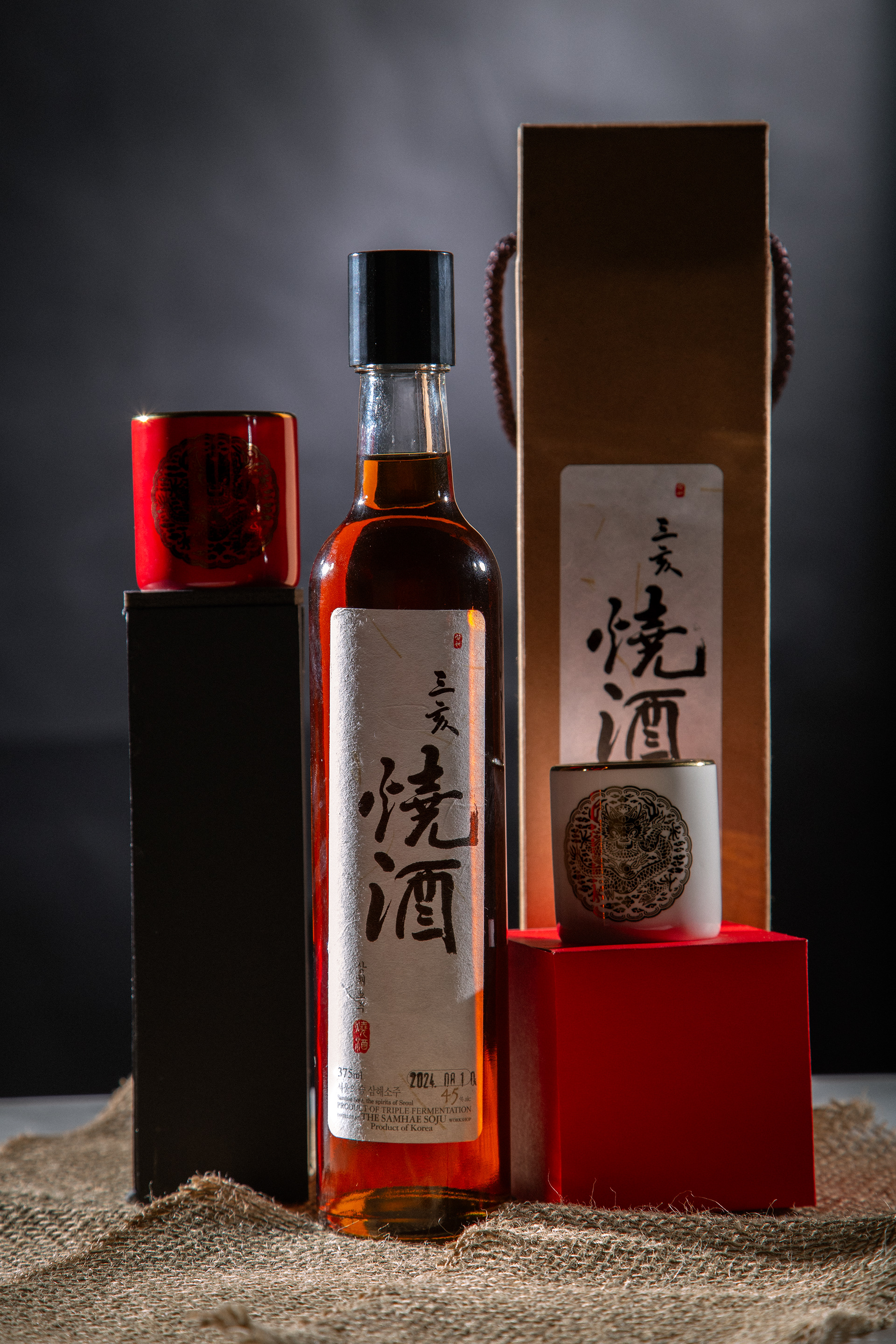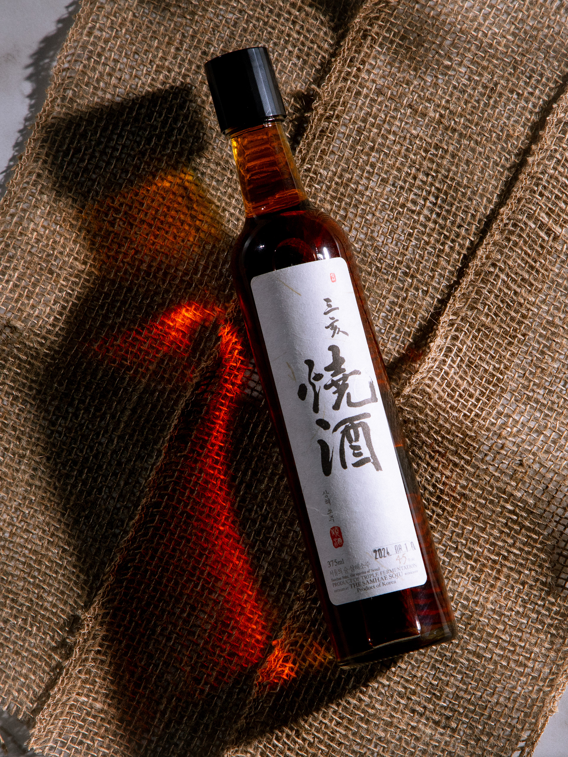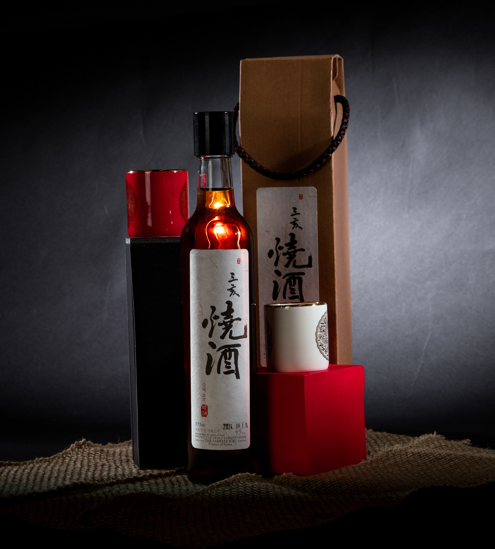 This project is a studio product photography exercise centered on a bottle from Samhae Soju, a traditional Korean distillery known for its heritage brewing methods.